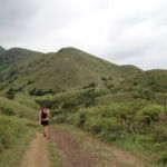 Il est déjà temps de redescendre (ce qui d’ailleurs ne sera pas une descente unique mais plutôt une descente entre coupée de pas mal de petites remontées). On sent les jambes qui commencent à tirer, et surtout le sentier, tout en planche de bois, certes très joli mais est hyper glissant! On manque de finir par terre plus d’une fois et ça en devient usant! Et pour couronner le tout, à 18km, une petite averse histoire de finir de nous tremper!
