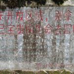 A 1km à vol d’oiseaux nous voyons l’arrivée du téléphérique mais surtout l’aménagement incroyable qu’ils ont fait autour. Nous avons vraiment l’impression que les autorités cherchent à limiter les libertés et que tout le monde reste dans un endroit restreint. De l’arrivée du téléphérique, il y a une sorte de circuit de 1km avec des barrières. Nous arrivons et quittons le sentier pour monter sur ce circuit. Bien sur nous enjambons des barbelés à coté de panneaux indiquant « interdiction de grimper »! Nous faisons une petite pause avec une soupe chinoise en gobelet. Ils en profitent comme dans les restos d’altitude de Métropole! Nous payons les nouilles 3 fois le prix d’en bas! Et encore une fois nous profitons du spectacle des chinois qui se prennent en selfie à tout va. Beaucoup ont de longues doudounes rouges qu’ils doivent prendre en location en bas du téléphérique. Encore une belle affaire!