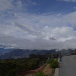 Il y a au cours de la montée des abris construits sur pilotis très agréables quand il pleut! Lorsque nous nous arrêtons un petit écureuil vient vers nous, pas farouche le moins du monde pour voir ce qu’on peut lui offrir. Il vient même manger dans la main de Pierre!
