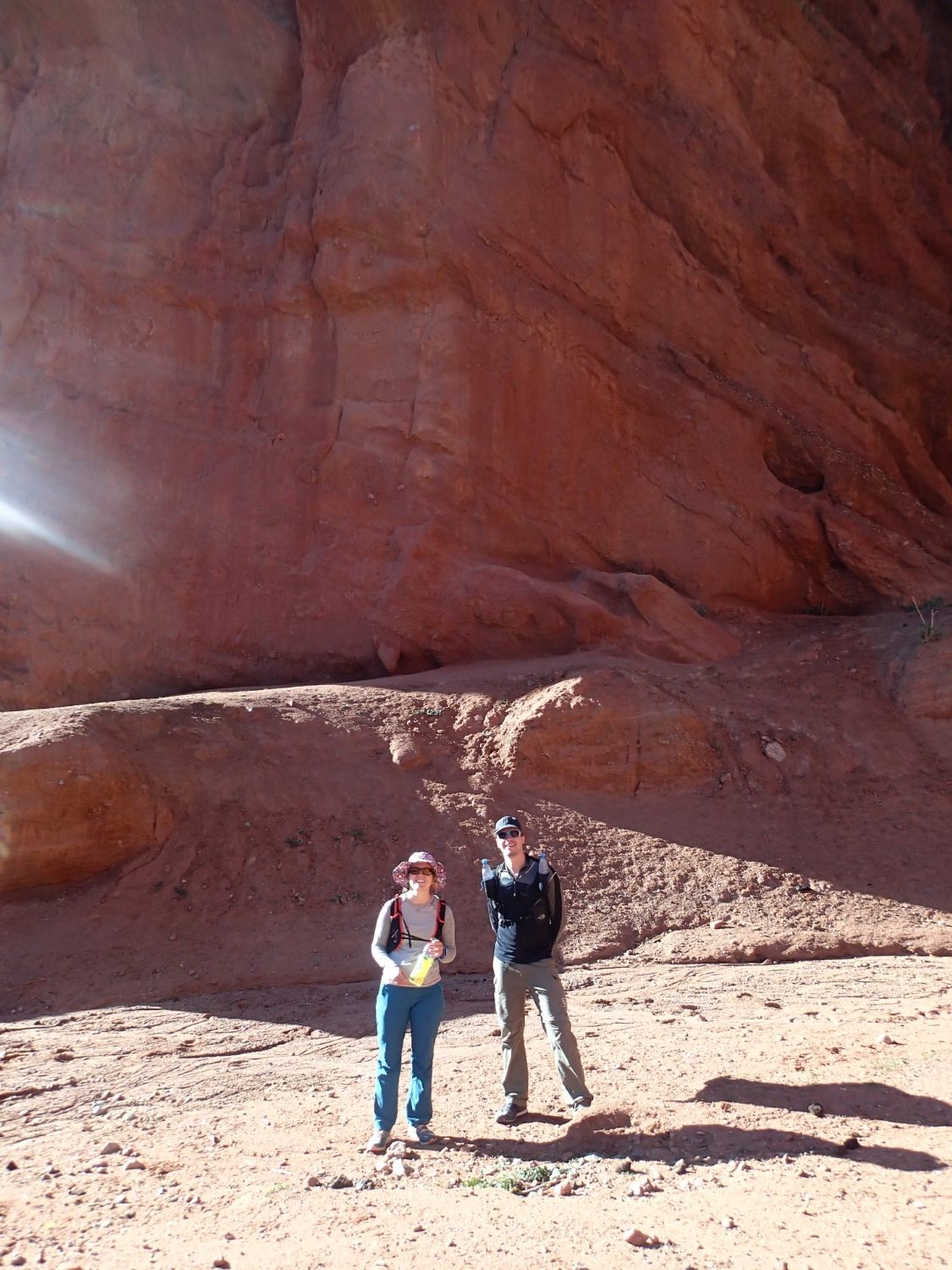 Nous arrivons dans un petit village juste à côté de formations rocheuses immenses rouges. Très beau ! Nous montons un peu et nous nous retrouvons sur une plaine depuis laquelle la vue est magnifique. Nous pouvons voir le lac et même apercevoir les montagnes en face.